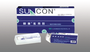 该产品固化速度适宜.组织粘接强度大.聚合热低.聚合膜韧性好.组织相容性好.适用范围广泛.使用方便.常温贮存稳定性好. 安全无毒副作用,具有粘合、止血、止痛、修补、加固、粘堵、栓塞、护创、促进愈合,减少疤痕等功效,它适用于手术切口和创口的粘合;内脏创面止血、修补、加固;窦道瘘管的粘堵;骨折片的粘合;血管栓塞等,具有广阔的应用前景和推广价值。它是国内唯一一家被批准全面适用于:内脏创面止血、修补、加固;窦道瘘管的粘堵;骨折片的粘合;血管栓塞等的医用胶产品,在国内同类产品中居领先水平。