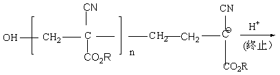 实验证明,聚氰基丙烯酸烷酯毫微球极易生物降解,在体内几天即可以消除。这类聚氰基丙烯酸烷酯的降解速率随烷基碳原子数的增加而降低。包括甲,乙丁,异丁和己酯都曾使用过,其中聚氰基丙烯酸丁酯(PBCA)降解最慢,体内耐受性最好。经用 14C-聚氰基丙烯酸烷酯实验表明,其降解产物为水溶性的聚氰基丙烯酸,它不贮存于组织内,而从尿中排泄出去。药物的包封率一般在15%-90%内,亲酯性药物的包封率尤其高;聚合反应在室温进行,无需r辐射或者外加化学引发剂,实际是水中的的OH-离子做引发剂,故PH值对聚合反应的速率影响较大,碱性溶液反应快反应式如下: